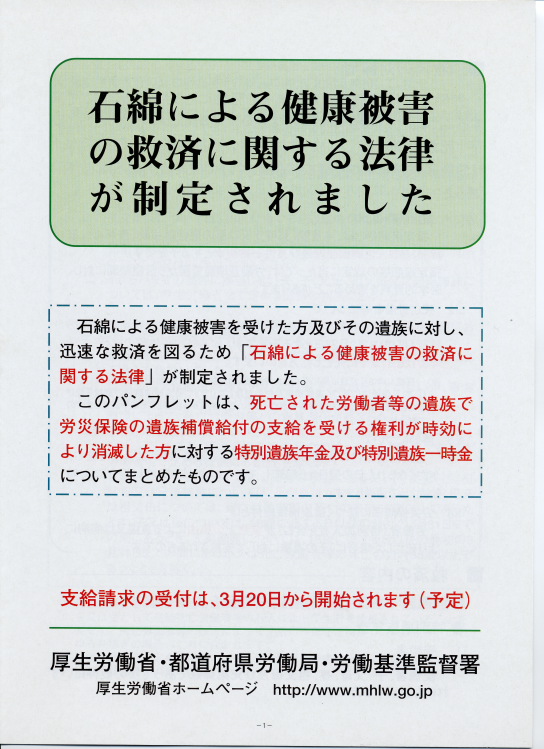 石綿による健康障害の救済に関する法律が制定されました。
